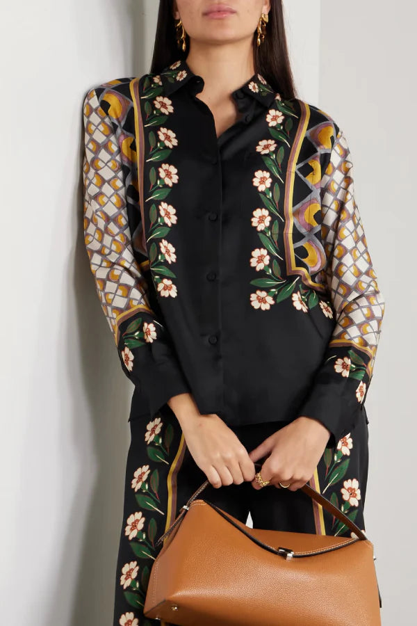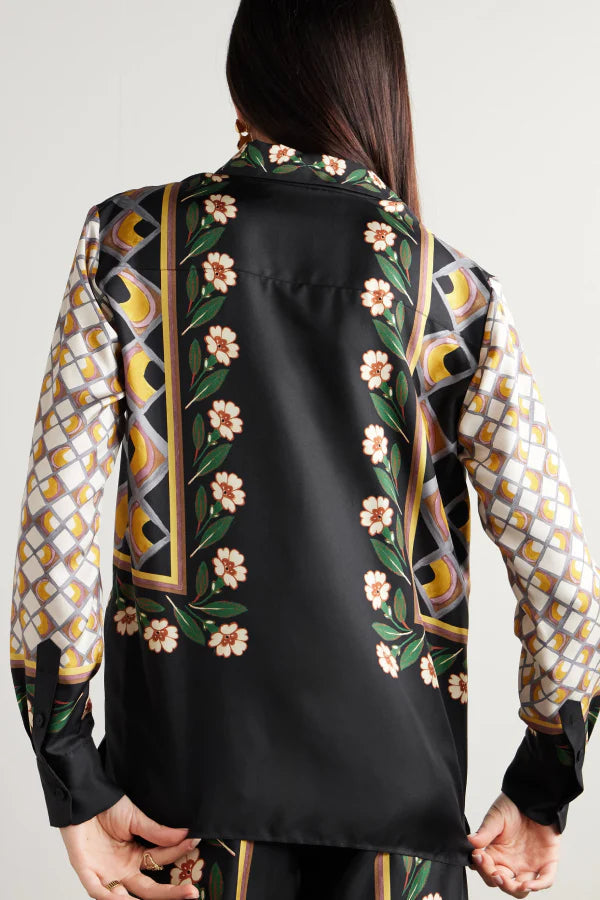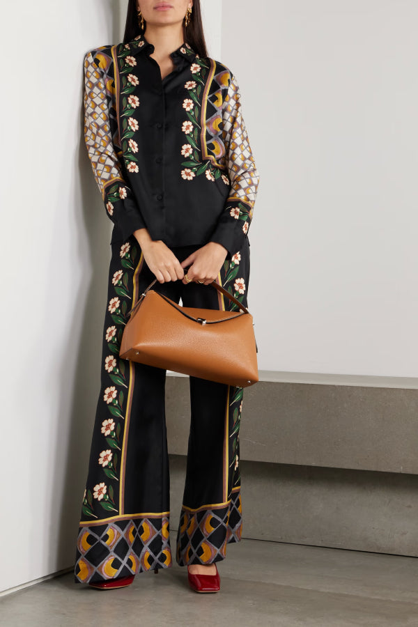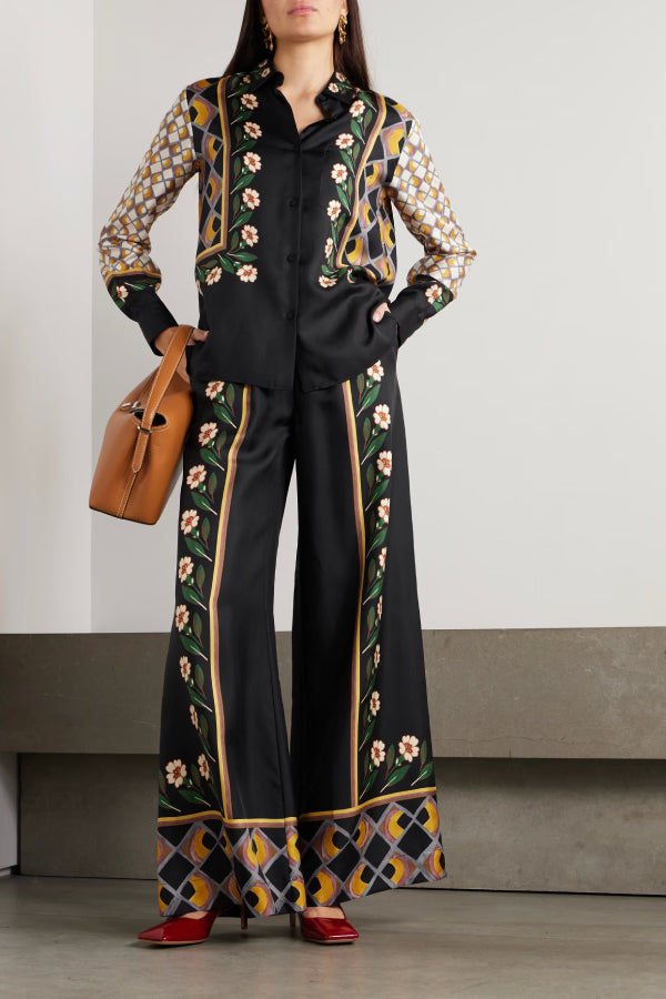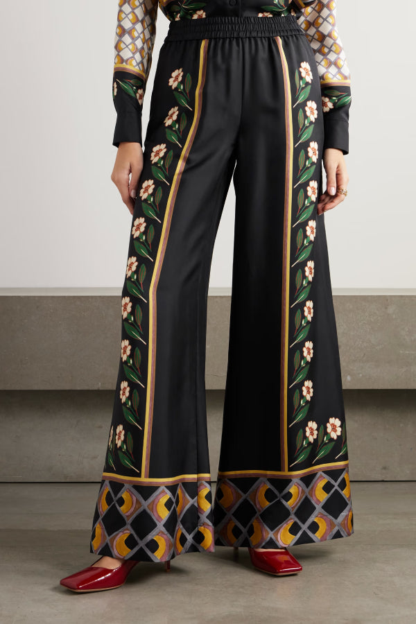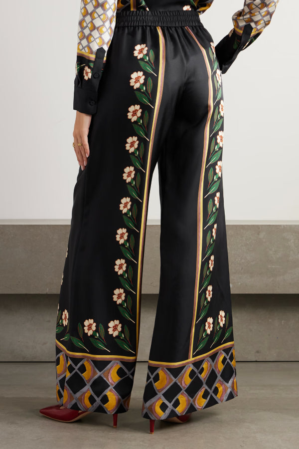 pants are printed with painterly flowers and an abstract grid-like pattern along the wide legs. They're cut from soft silk-twill and have a comfortable elasticated waistband. Wear them with the matching shirt.
